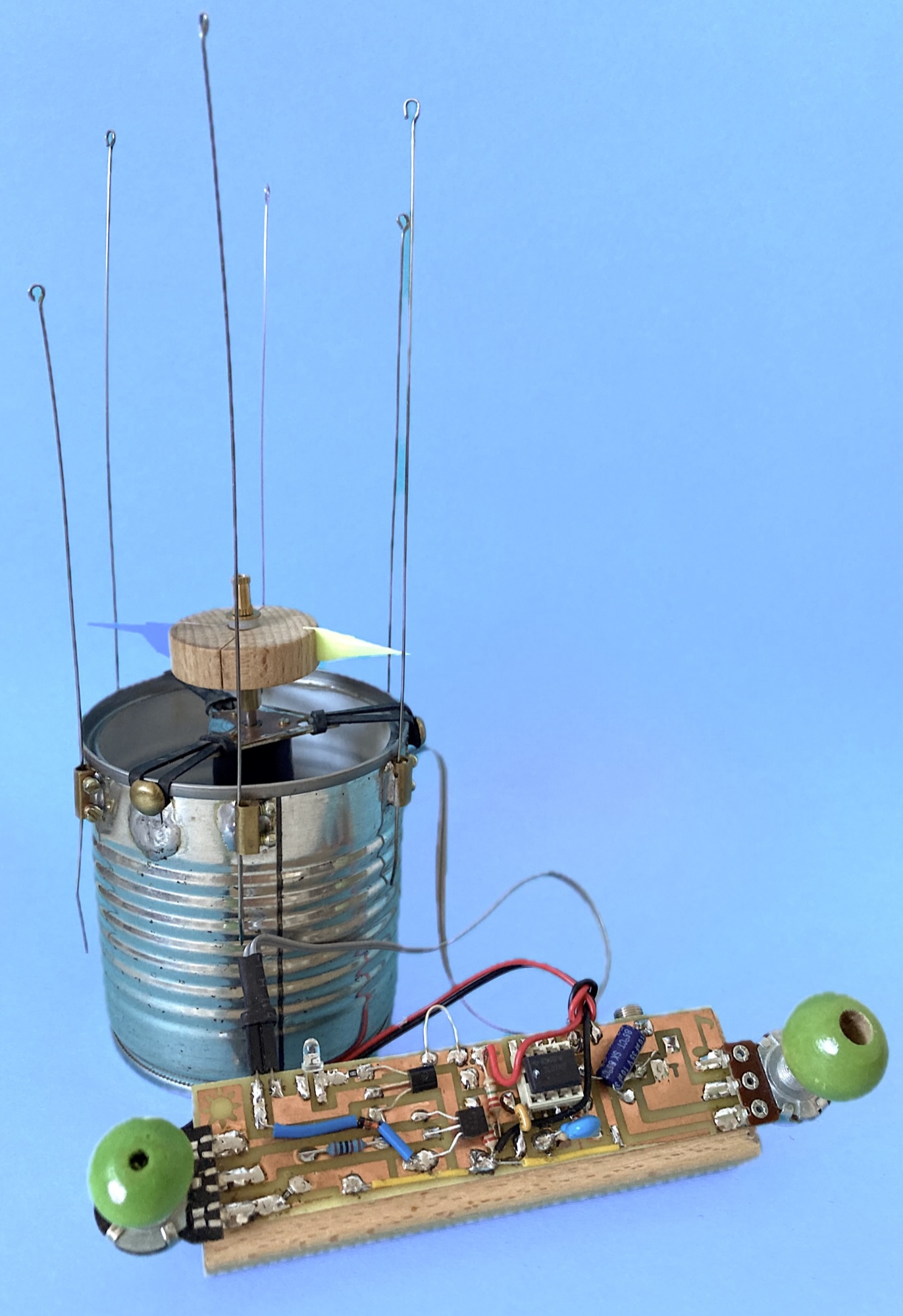 Die Dosen-Kalimba ist ein elektromechanisches Instrument für die experimentelle Klang- und repetitive Rhythmusforschung. Sie besteht aus der Dosenkalimba mit integriertem Motor und Kontaktmikrofon sowie einem Steuerbord mit Elektronik zur Regelung der Motorgeschwindigkeit und der Mikrofonverstärkung. Im Workshop löten wir zuerst die Steuerelektronik auf einer vorbereiteten Platine und montieren anschließend die Mechanik. Am Ende des Workshops erforschen wir die Spielmöglichkeiten. Das Instrument kann selbstverständlich nach dem Workshop mitgenommen werden. Elektronische Vorkenntnisse sind nicht erforderlich.